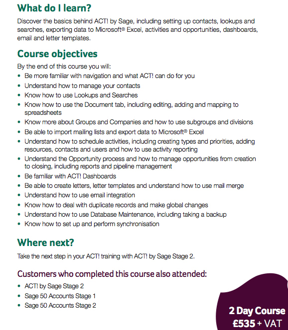 Sage CoursesBookkeeping CoursesExcel CoursesSage 50 AccountsSage 50 ForecastingSage 50 WinforecastSage 50 Job CostingSage 50 PayrollSage Instant Range