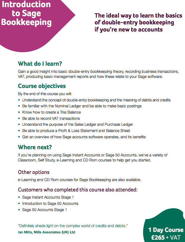Sage CoursesBookkeeping CoursesExcel CoursesSage 50 AccountsSage 50 ForecastingSage 50 WinforecastSage 50 Job CostingSage 50 PayrollSage Instant Range