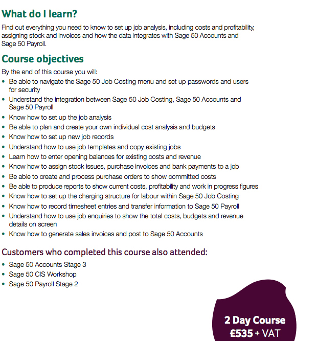 Sage CoursesBookkeeping CoursesExcel CoursesSage 50 AccountsSage 50 ForecastingSage 50 WinforecastSage 50 Job CostingSage 50 PayrollSage Instant Range