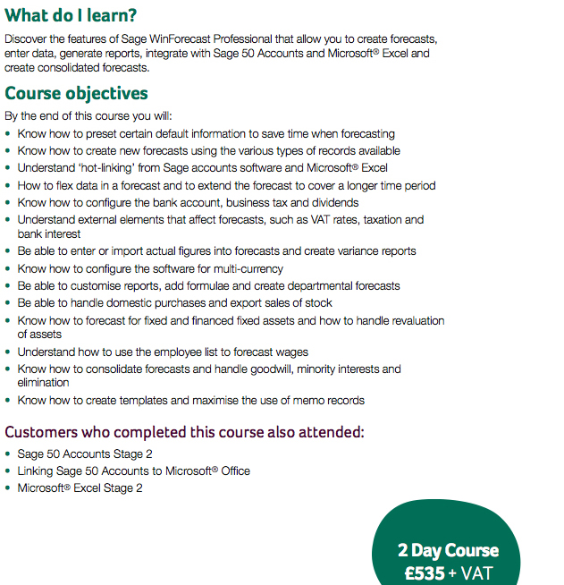 Sage CoursesBookkeeping CoursesExcel CoursesSage 50 AccountsSage 50 ForecastingSage 50 WinforecastSage 50 Job CostingSage 50 PayrollSage Instant Range